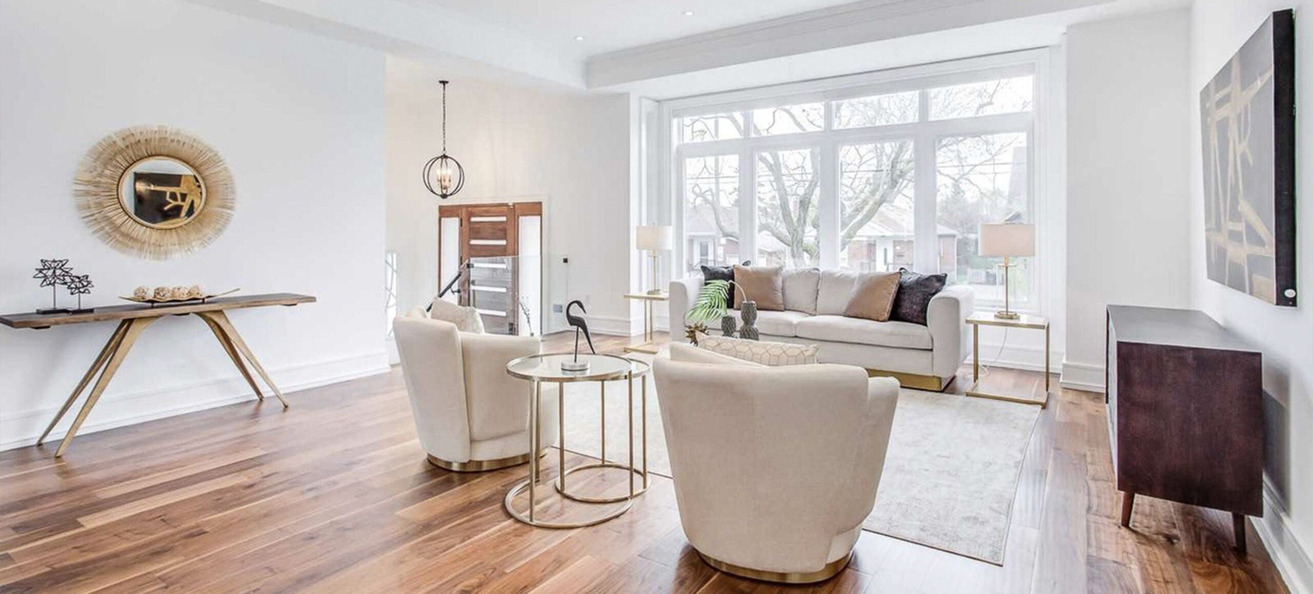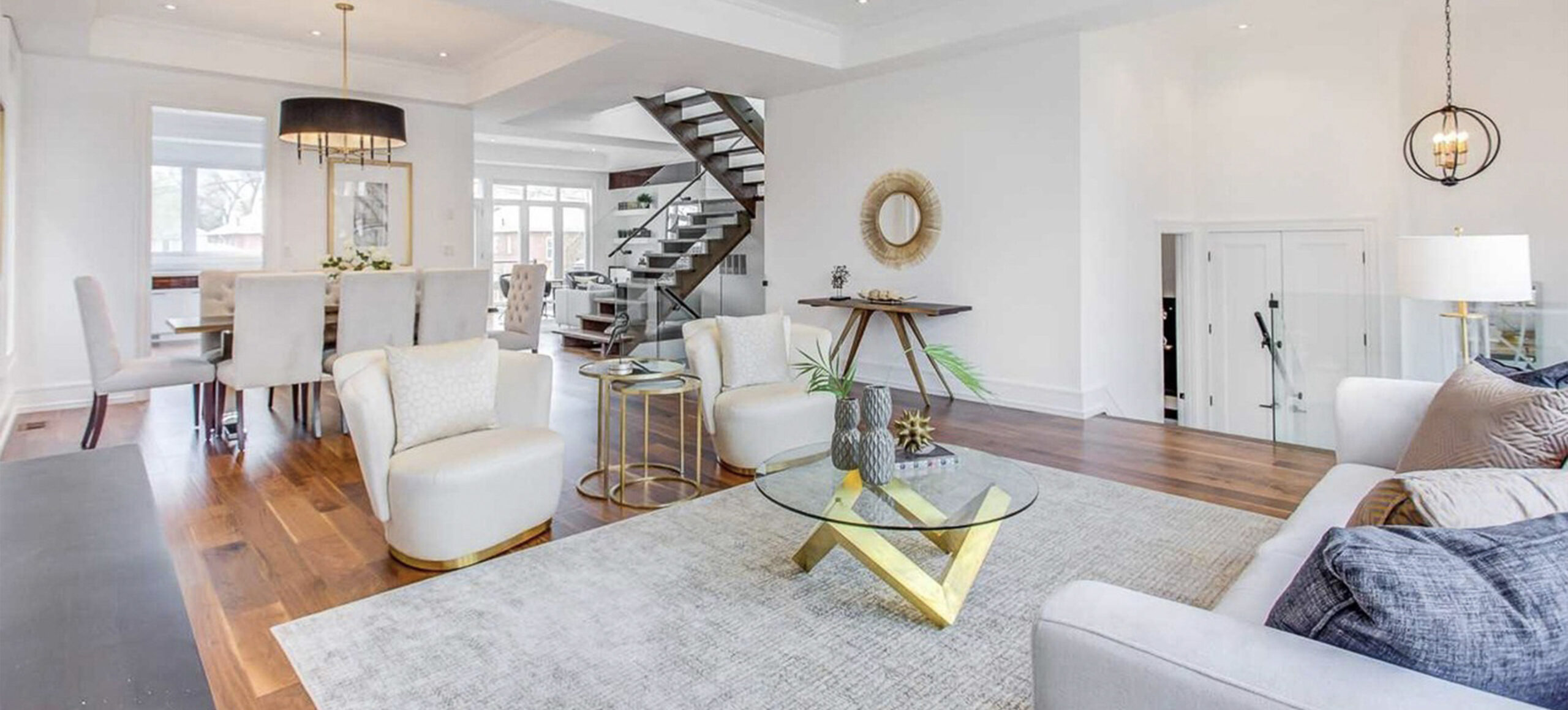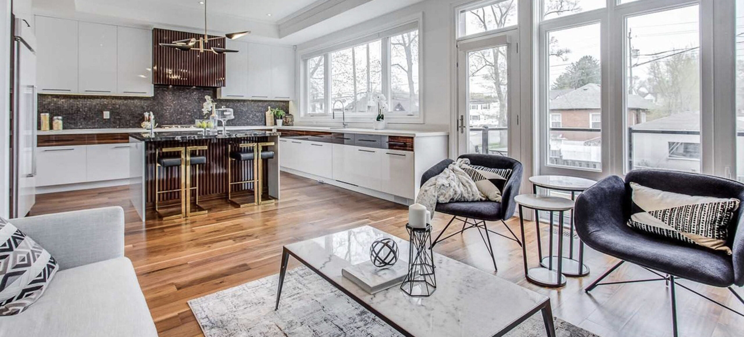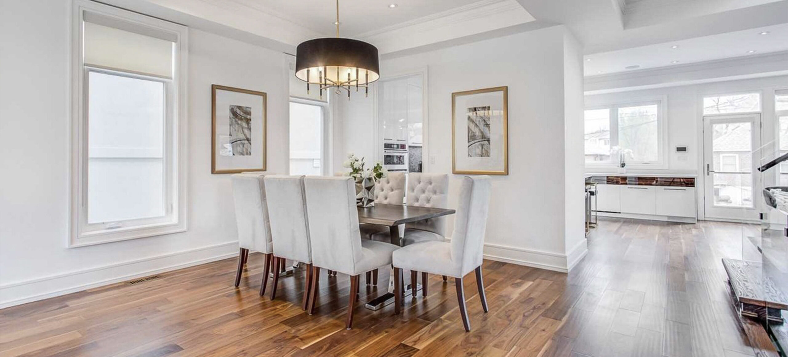 The exquisite kitchen and family area are ideal for entertaining, boasting premium finishes and artistic wood trim accents. Large windows throughout flood the space with natural light, accentuating the home’s stunning design and flawless detailing.