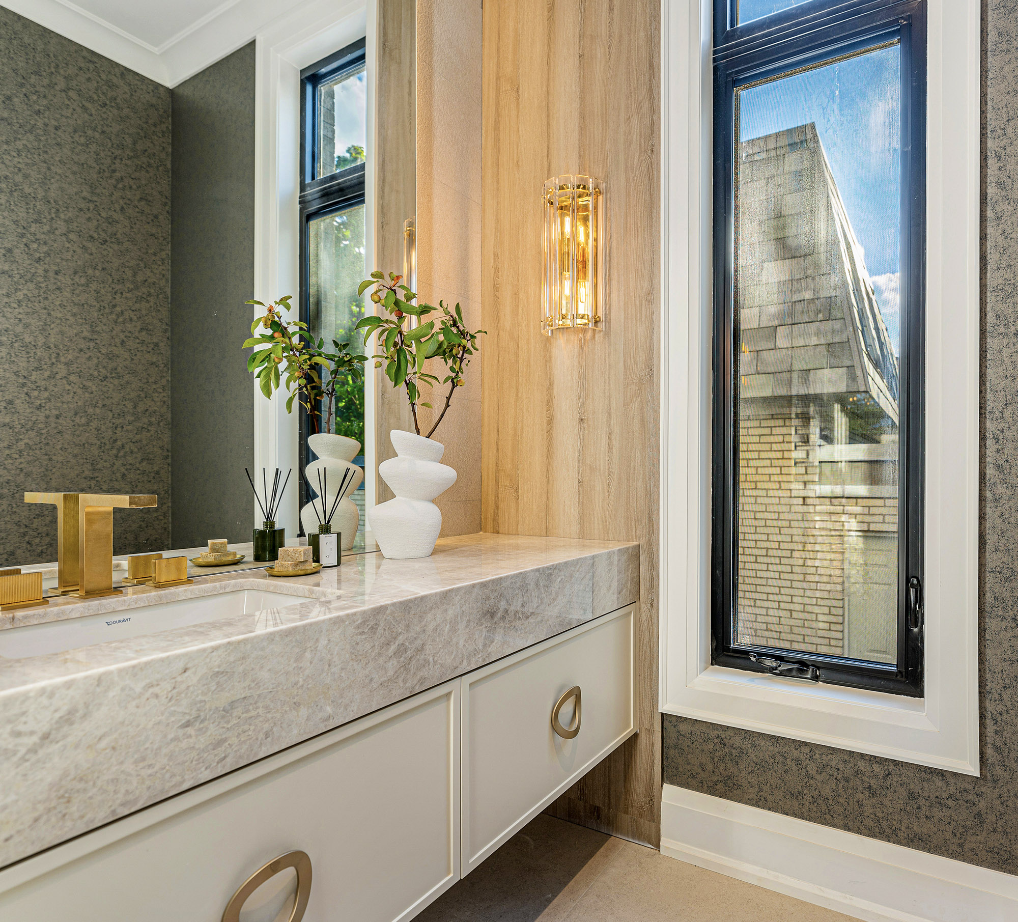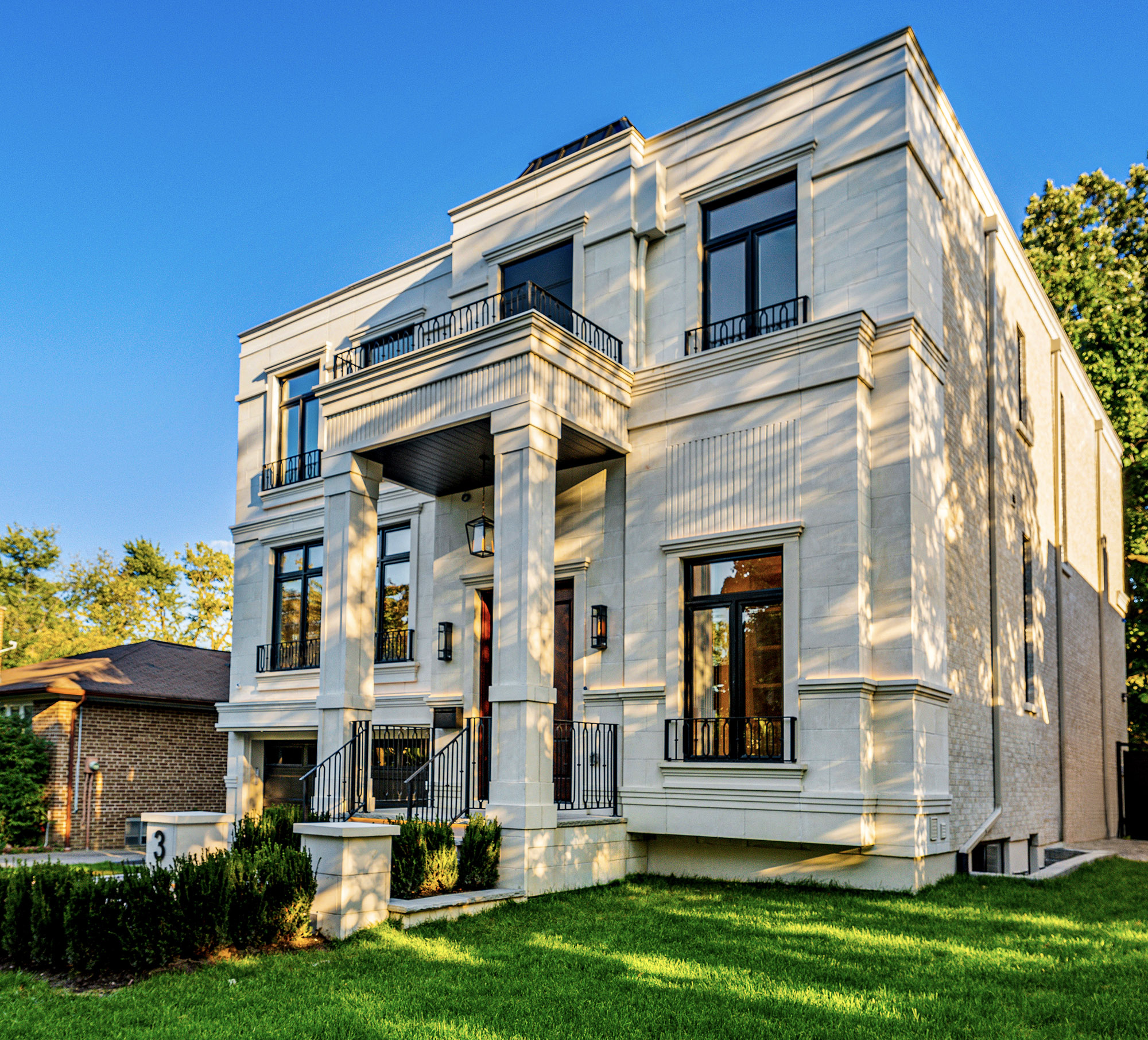 Amidst century-old trees, the Ellioak Residence distinguishes itself with a refined exterior that thoughtfully blends traditional and modern elements, creating a striking yet harmonious presence in its neighborhood. The design’s material choices and balanced form contribute to its elegant and cohesive look.