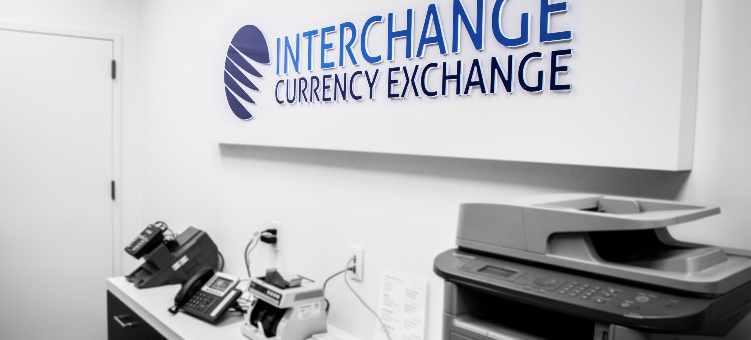 Operating within a shopping mall context required careful coordination with neighbouring tenants to install drain and water services, as well as compliance with Ontario Building Code through the addition of a staff washroom. The result is a polished, efficient retail space that enhances the customer experience for this busy currency exchange location.