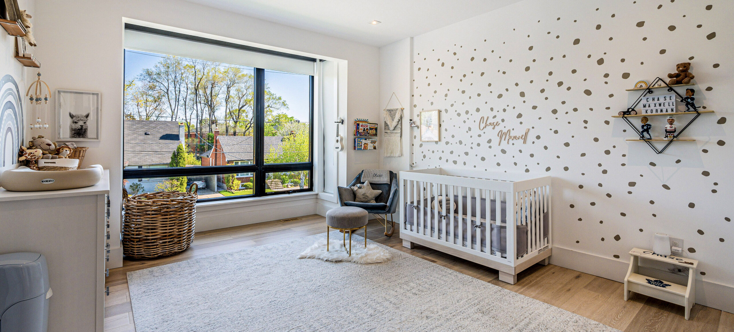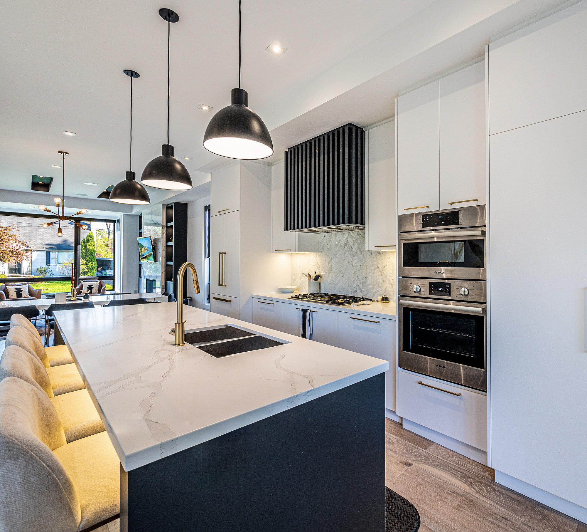 The sleek, contemporary exterior with clean lines and a modern color palette complements the surrounding landscape. Inside, the open-concept layout fosters modern family living with adaptable spaces. Warmth and functionality are emphasized through natural materials and textures, creating a cozy yet sophisticated atmosphere. From the stunning kitchen to spacious bedrooms, every detail has been thoughtfully designed to provide an ideal, welcoming home for a young family.