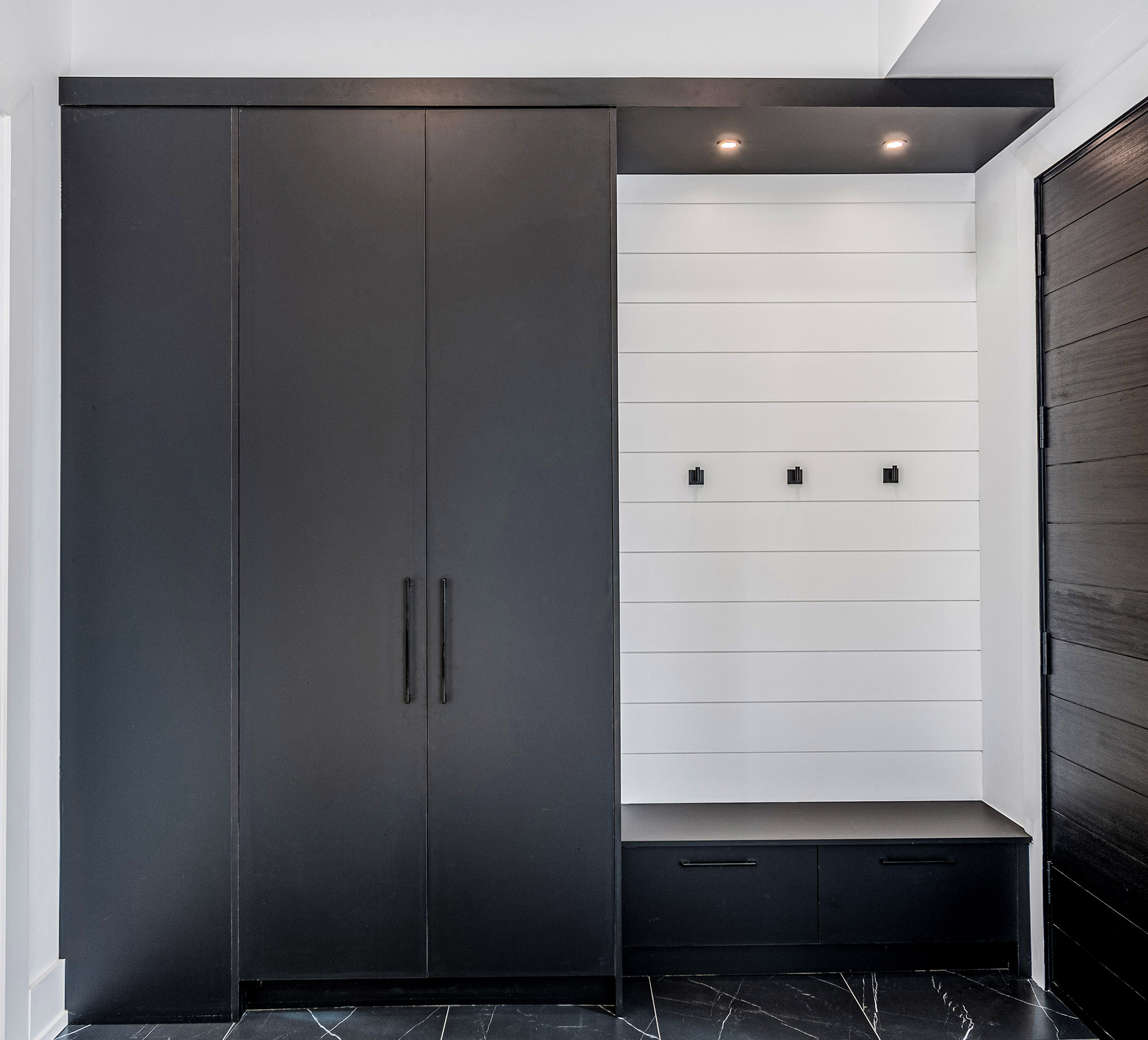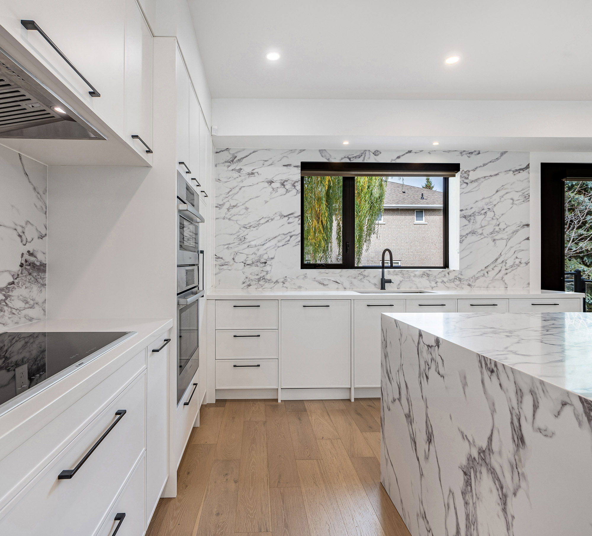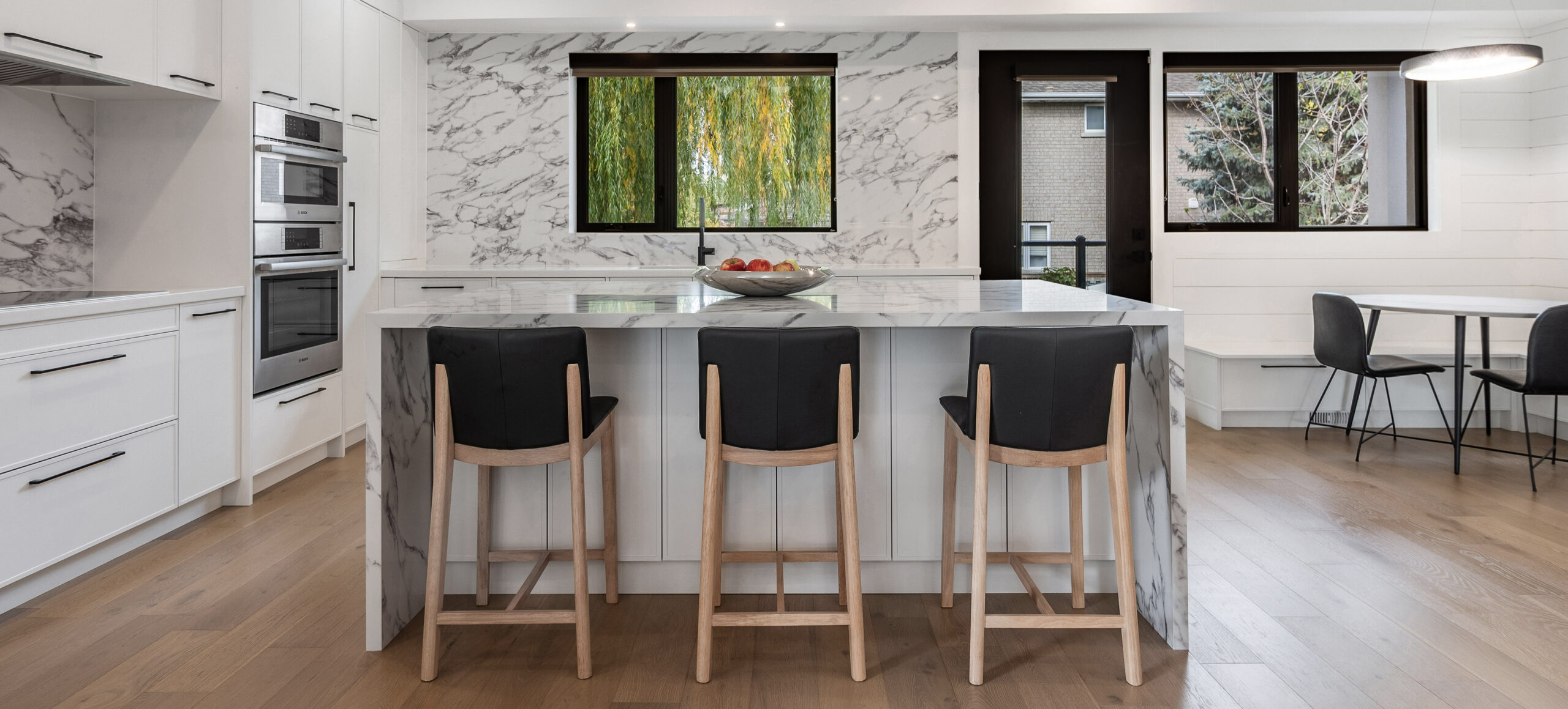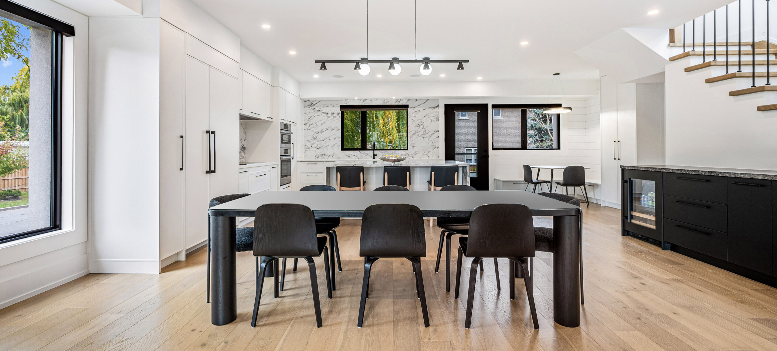 This renovation successfully expands essential living space for a growing family through a second-floor addition and rear extension, thoughtfully integrating personalized and communal areas that promote smooth movement and functional zoning. The design harmonizes modern and traditional elements with a contemporary color palette applied both inside and out. On the corner lot exterior, sleek ACM panels create a distinctive wrap-around effect, while classic dormer windows honor the neighbourhood’s architectural heritage, blending past and present styles seamlessly.